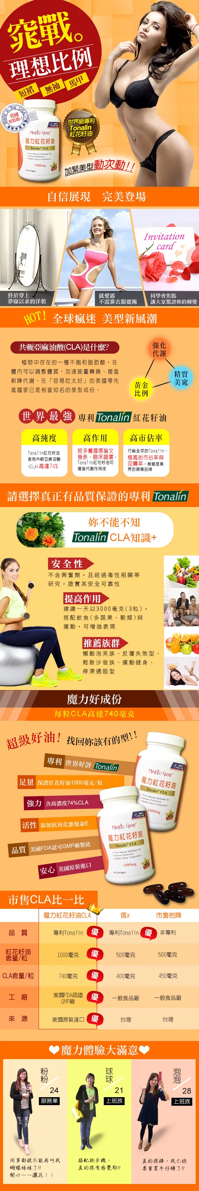 Magic Gene-魔力紅花籽油CLA (60顆-瓶) 四瓶組評價超好 CP值超高 經常缺貨喔